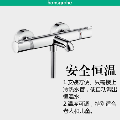 恒温龙头具有恒定安全温度、断冷水时自动关闭防烫伤,解决普通淋浴因热水器、供水管道、公共供热系统、冷热水压不平衡等原因造成忽冷忽热的问题等优越性能。